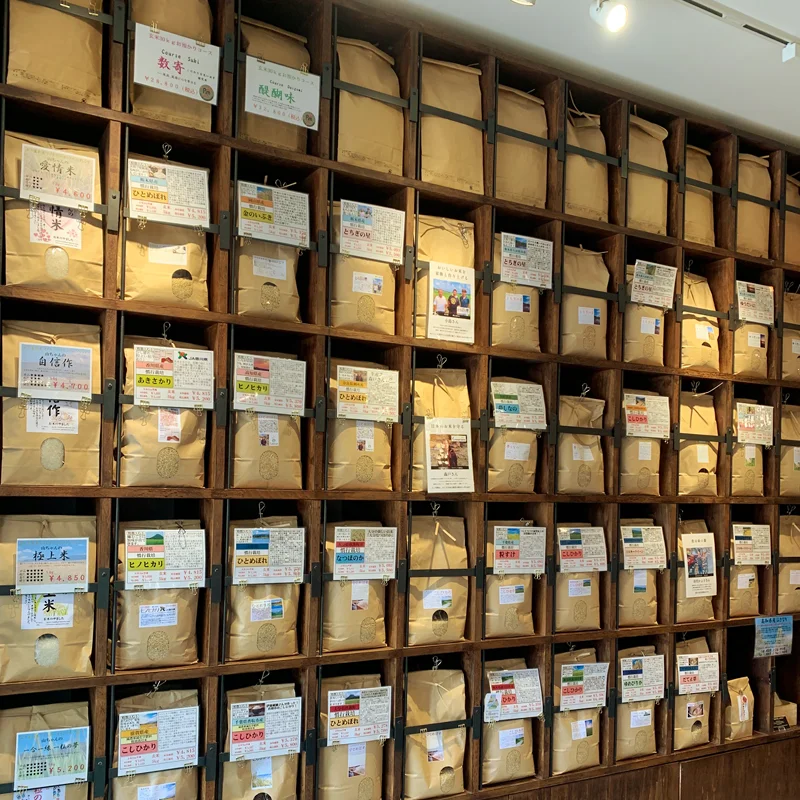 北は北海道から南は九州、西はスペインイタリアまで産地、銘柄の異なるお米を約300種類以上取り揃えています。