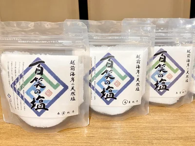 福井県福井市の越前海岸沿いにある志野製塩所の人気商品『百笑(ひゃくしょう)の塩』は、越前海岸の美しいきれいな海水が使われています。